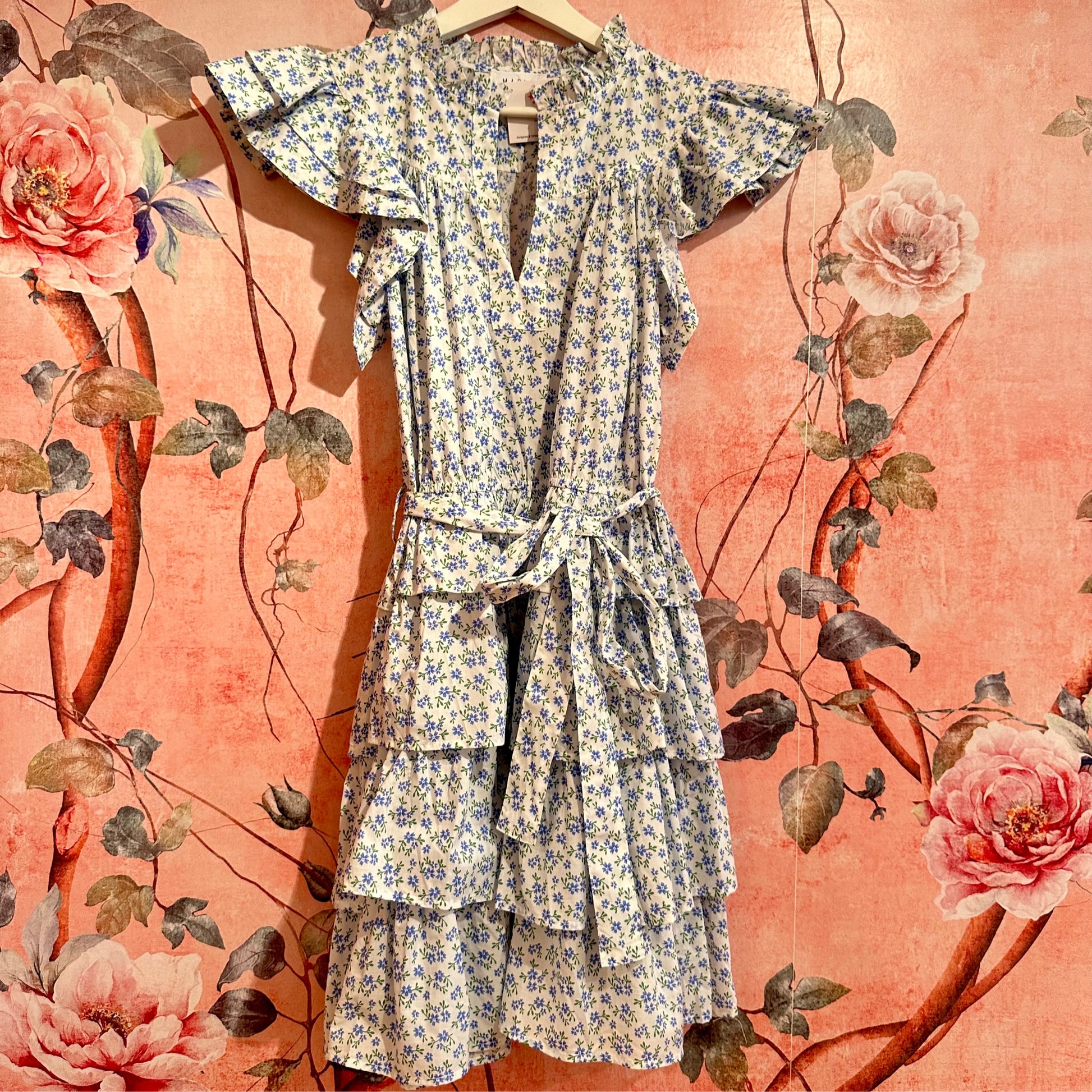 Blue Ruffled Shoulder Dress